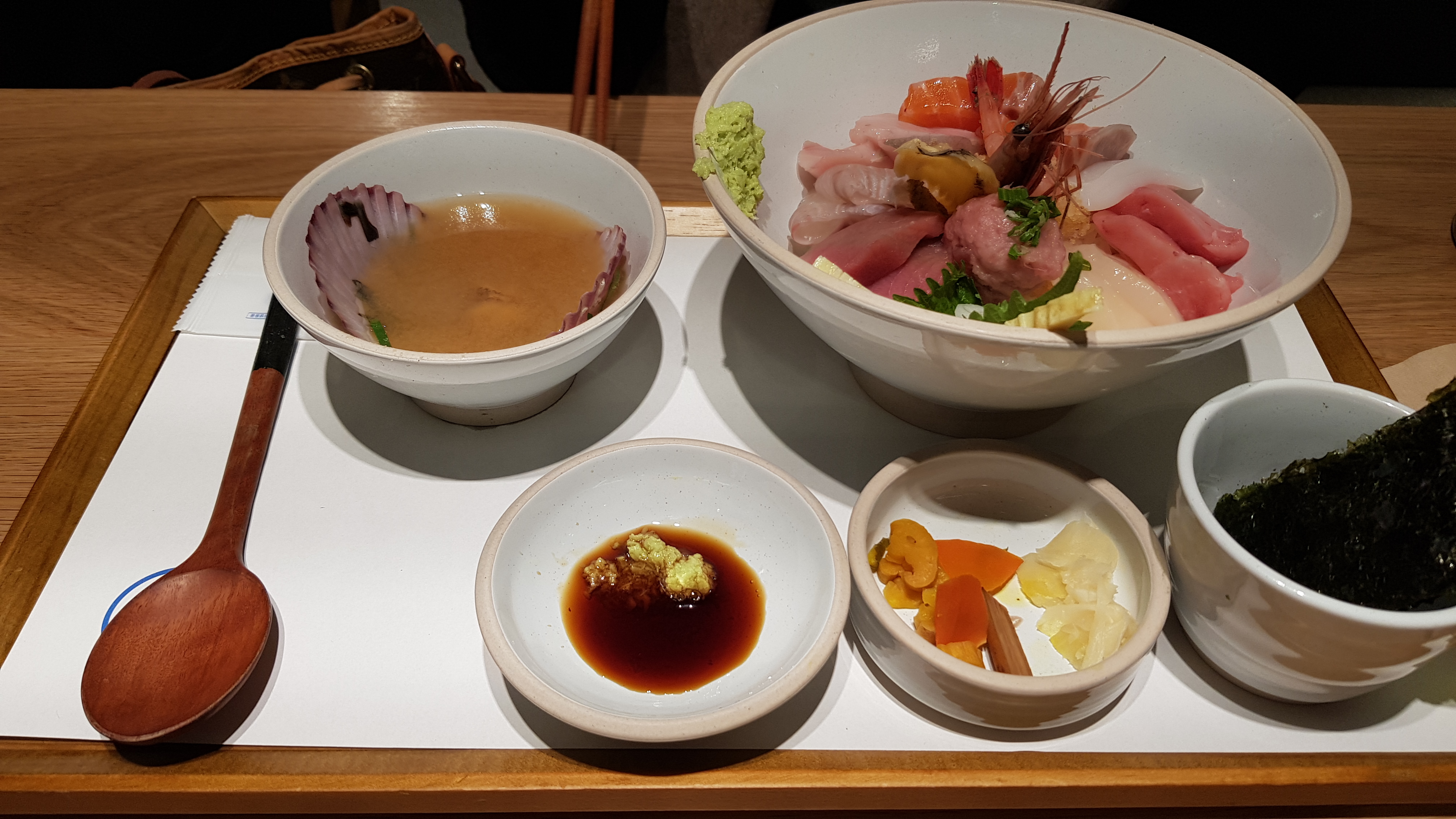 카이센동이다. 가리비 조개가 담긴 된장국도 맛있다.